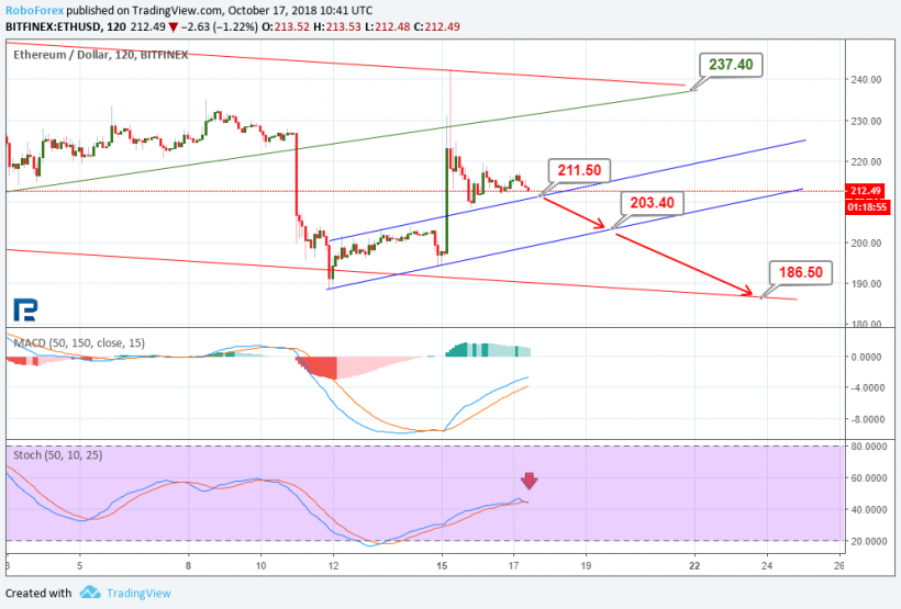 Анализ курсов криптовалют: рост только в краткосрочном периодеОпубликовано: 6 лет назад Рынок криптовалют по-прежнему подвержен влиянию краткосрочных «всплесков» интереса, отражающихся на волатильности. По всей видимости, рынок находит поддержку в районе минимумов, и это не позволяет ему продолжить снижение. В свою очередь, область максимумов не пропускает котировки вверх, что может говорить о стабилизации ситуации в среднесрочной перспективе. О дальнейших возможных сценариях движения цен нескольких популярных альткоинов расскажет ведущий аналитик RoboForex Дмитрий Гурковский. EthereumНа 2-часовом графике Ethereum можем увидеть, что криптовалюта продолжает движение в среднесрочном нисходящем канале. Стоит отметить, что после пробоя поддержки предыдущего канала рынок протестировал эту линию уже в качестве сопротивления. Краткосрочная ситуация характеризуется коррекционным восходящим трендом. Текущее тестирование линии поддержки имеет шанс как на отскок от нее, так и на ее пробой. В случае отскока котировки могут повторно протестировать основное сопротивление у отметки $237,40. Пробой уровня поддержки на $211,50 станет сигналом развития нисходящего импульса к краткосрочной поддержке на $203,40. А пробой этого уровня, в свою очередь, позволит котировкам достичь линии поддержки основного канала около уровня $186,50. В пользу гипотезы о грядущем снижении выступает формирование «Черного креста» на индикаторе Stochastic. RippleRipple на 4-часовом графике демонстрирует отскок от среднесрочной поддержки и, вместе с тем, завершение нисходящего тренда. Тестирование линии сопротивления у отметки $0,5051 может закончиться ее пробоем, а он откроет путь котировкам в верхний проекционный канал — к уровню $0,6134. В пользу развития такого сценария роста служит «Золотой крест» на MACD и направленность линий по Stochastic. Также стоит рассмотреть возможность отбоя от сопротивления с последующим снижением к текущему уровню поддержки — $0,4100. Его пробой будет означать продолжение развития нисходящей динамики к целевому уровню поддержки на $0,3094. NEO2-часовой график NEO демонстрирует развитие коррекционной фазы роста внутри среднесрочной нисходящей тенденции. Возможной целью краткосрочного роста является линия сопротивления основного коридора — уровень $18,32. На потенциал продолжения роста указывает и направленность линий MACD. Если рассмотреть перспективы дальнейшего снижения, то увидим, что ему препятствует линия поддержки у отметки $15,45. При этом на индикаторе Stochastic наблюдаются предпосылки к формированию «Черного креста». Но сигналом к продолжению нисходящей тенденции будет именно пробой уровня $15,45. Целью снижения в этом случае станет уровень $14,30. EOSС точки зрения технического анализа текущая динамика EOS на 2-часовом таймфрейме демонстрирует продолжение среднесрочной консолидации, при этом краткосрочная тенденция является восходящей. Последний импульс роста протестировал линию сопротивления консолидационного канала. Пробой сопротивления в районе отметки $5,81 позволит котировкам развить канал восходящего движения до отметки $6,35. Наблюдающееся в настоящий момент тестирование локальной линии поддержки может закончиться ее пробоем и снижением к уровню $5,29. В качестве подтверждающего фактора стоит дождаться формирования «Черного креста» на индикаторе Stochastic. В дальн