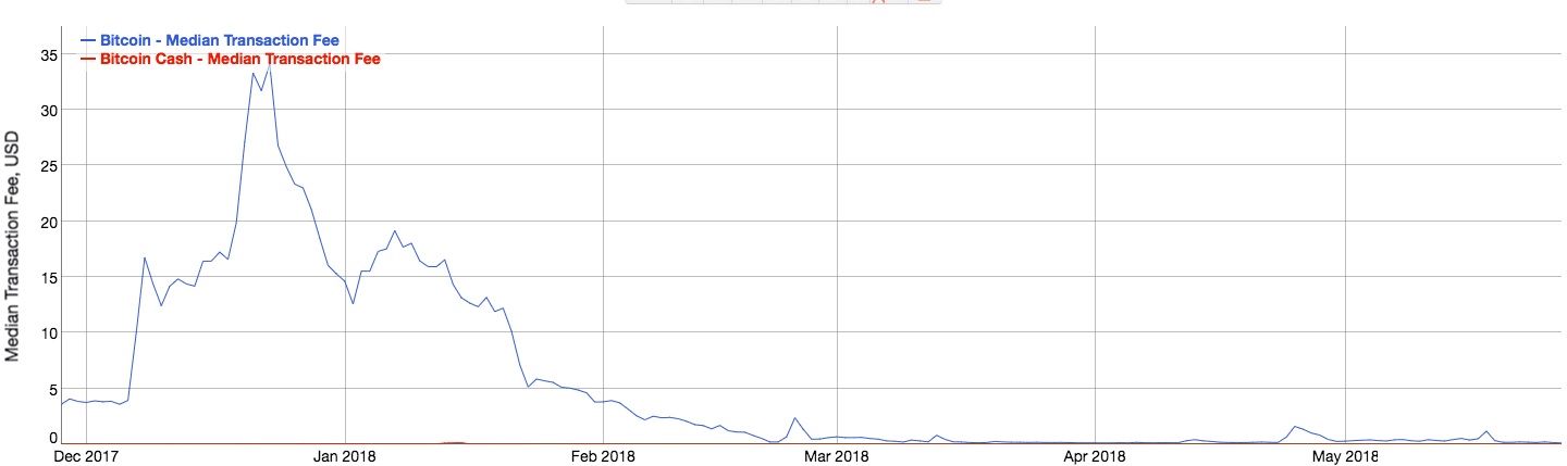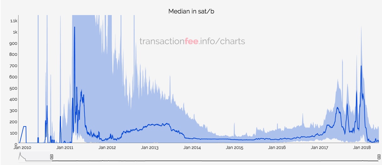 Комиссии за транзакции биткоина снизились до уровня 2011 годаОпубликовано: 7 лет назад Время, необходимое на обработку биткоин-транзакций, и комиссии за них — существенные препятствия для признания самой известной криптовалюты в качестве средства повседневных расчётов. Пока конкуренты тщетно пытались занять это вакантное место, у биткоина, кажется, всё наладилось. За последние три месяца срединная ставка комиссии за биткоин-транзакции стала одной из самых низких с 2011 года. Как показывает статистика transactionfee.info, 4 и 5 апреля срединная ставка достигла минимального уровня, снизившись до 6,86 сатоши за байт. Комиссия повысилась до 39,29 30 апреля, однако с тех пор снова снизилась. В субботу, 26 мая, комиссия опустилась до 9,43 сатоши, а в воскресенье — до 8,86. С начала 2018 года этот показатель снизился более чем значительно. В канун нового года он составлял 453,57 сатоши за байт и с тех пор постепенно сокращался. Напомним, высокие затраты на транзакции и значительное время ожидания операций привели к расколу блокчейна биткоина — созданию хардфорка Bitcoin Cash (BCH). Bitcoin Cash обещал более быстрее и более дешёвые транзакции по сравнению с биткоином. Если первоначально разрыв между средними ставками комиссий этих криптовалют был значительным, то за последние три месяца он существенно сократился. Средняя ставка транзакционных комиссий ранее составляла $34,095 для биткоина по сравнению с $0,0333 для Bitcoin Cash, однако в прошлые выходные эти показатели уже составляли $0,113 и $0,0038 соответственно. Софтфорк биткоина Segregated Witness (SegWit), который теперь широко внедряется, стал одним из факторов снижения транзакционных сборов биткоина. Если ранее SegWit использовался только в 28% транзакций, то в прошлое воскресенье этот показатель приблизился к 38%. Комиссии за транзакции с SegWit составляют лишь 18% в общем объёме транзакционных издержек. Ожидается, что дальнейшее внедрение SegWit и Lightning Network (LN) полностью решит проблемы масштабируемости биткоина. Lightning Network пока находится на стадии становления, но эффективность этого протокола впечатляет: пропускная способность сети LN уже превысила $150 000. Последние новости рынка криптовалют |
