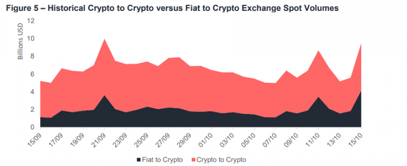 Криптовалютные биржи без поддержки фиата обеспечивают большую часть объема торгов на рынкеОпубликовано: 7 лет назад Согласно данным октябрьского отчета аналитического ресурса CryptoCompare, в период с середины сентября по середину октября 2018 года криптовалютные торговые площадки без поддержки фиатных пар обеспечивали большую часть объема торгов на рынке цифровых активов.