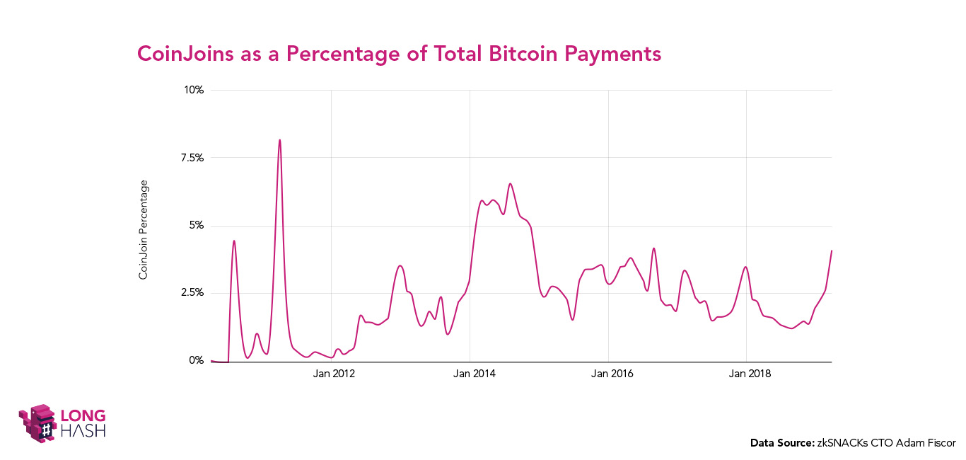 Число биткоин-транзакций с использованием технологии микширования за девять месяцев выросло на 300%Опубликовано: 6 лет назад Популярность микширования, технологии, призванной обеспечить более высокий уровень анонимности в сети биткоина, за последний год существенно выросла. Так, согласно недавнему отчету LongHash, число транзакций с использованием метода CoinJoin за последние девять месяцев выросло на 300% и сегодня составляет 4,09% от всех транзакций. В своем докладе LongHash ссылается на данные, предоставленные CTO компании zkSNACKs Адамом Фичором. Напомним, что zkSNACKs является разработчиком Wasabi Wallet, который имеет встроенную поддержку технологии CoinJoin и является одним из наиболее популярных сегодня инструментов анонимизации биткоин-транзакций. Основная идея технологии CoinJoin заключается в перемешивании (микшировании) монет разных пользователей и их последующем объединении в одну транзакцию. Обычные транзакции легко отследить в публичном блокчейне, и данный метод позволяет до определенной степени скрыть связь между отправителем и получателем платежа. Как видно на графике ниже, число CoinJoin-транзакций неуклонно растет с середины прошлого года, хотя до прежних исторических высот оно пока еще не дотягивает. В частности, наибольшее число микшированных транзакций пришлось на 2011 год, превысив тогда 7,5% от всех платежей в сети. Это может быть связано с тем, что тогда технология CoinJoin только начинала тестироваться, а само число транзакций в сравнении с сегодняшним днем было сравнительно невелико. Еще одна волна роста была отмечена в период с конца 2013 и по 2014 год, и ее главной причиной могла стать интеграция технологии Shared Coin в кошелек Blockchain в ноябре 2013. Shared Coin представляла собой доступную на то время opensource-имплементацию технологии CoinJoin. 1 февраля 2014 года эта функция из кошельков Blockchain была, однако, удалена, после чего число микшированных транзакций начало снижаться. В 2015 году состоялся релиз JoinMarket, после чего число CoinJoin-транзакций снова пошло вверх, но вплоть до августа 2018 года, когда был выпущен Wasabi Wallet, серьезного роста не наблюдалось. Возросшее к сегодняшнему дню число транзакций с использованием технологии микширования также свидетельствует о том, что все больше людей используют биткоин по его оригинальному предназначению – в качестве устойчивого к цензуре глобального платежного метода. Последние новости рынка криптовалют |