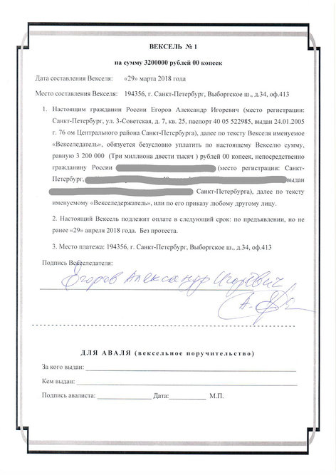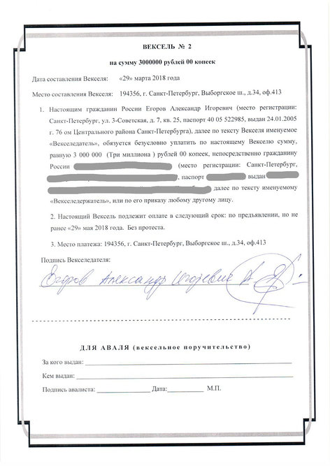 В кратком резюме Егорова, вероятно, забыли упомянуть о его исключительной настойчивости, поскольку вскоре братья Соловьевы получили предложение проинвестировать два проекта, в которых их новый «товарищ» занимал пост сооснователя. Получив отказ, Егоров не опустил руки и пригласил предпринимателей в роскошный офис [ул. Парадная, 9, Санкт-Петербург], куда, по их словам, возможен вход лишь через двойные запирающиеся двери и только по отпечаткам пальцев работающих в бизнес-центре. Там Соловьевым был представлен некий Илья [вероятно, Смирнов, у которого тоже 10-летний опыт в управлении компаниями и торговле на финансовых рынках], партнер Егорова. Вместе они рассказали братьям о своих проектах и потенциальном доходе, которые те могут получить от инвестиций. Андрей и Алексей выслушали и снова отказали. И вот, казалось бы, позиция предпринимателей уже предельно ясна, однако Егорову внезапно понадобились средства на реализацию SBC Platform, и он снова обратился к братьям за помощью. В этот раз они решили таки одолжить «предпринимателю, который заключал партнерские отношения с огромными китайскими холдингами», 114 ETH и 3,2 млн рублей с возвратом в течение полугода [скриншоты прилагаются]. Как только наступил «час икс», предприниматель не посчитал нужным вернуть свой долг, заявив, что братья вложили средства «в сомнительные и непонятные проекты, не отрегулированные законом РФ, связанные с большим риском» [видимо, он имел в виду SBC Platform]. Егоров также обвинил их в вымогательстве и шантаже, пригрозив обращением в правоохранительные органы.