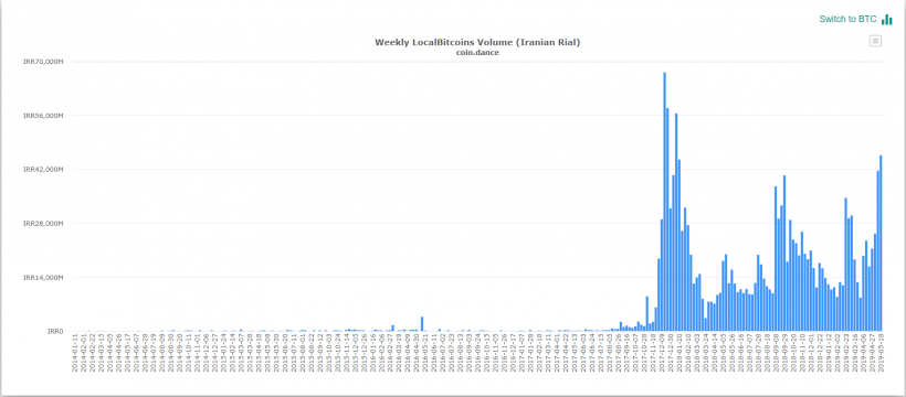LocalBitcoins перестала предоставлять услуги пользователям из Ирана из-за неприемлемых рисков работы в регионе.Опубликовано: 6 лет назад Популярная p2p-платформа LocalBitcoins прекратила предоставлять свои услуги иранским пользователям. Вероятной причиной такого решения могут быть санкции США, хотя представители сервиса не заявили об этом прямо, сообщает CoinDesk. Примечательно, что в течение нескольких недель объемы торгов в иранских риалах на LocalBitcoins существенно возросли, в итоге достигнув показателей января 2018 года (45,64 млрд иранских риалов за неделю). В ответ на вопрос одного из пользователей Twitter площадка заявила о неприемлемых рисках работы в регионе.