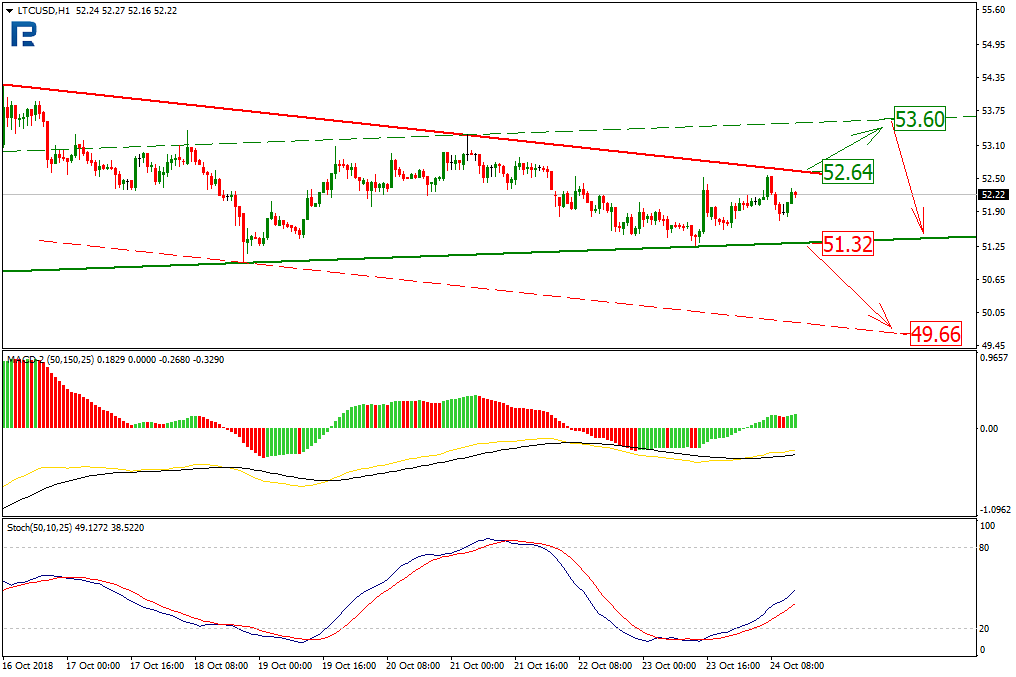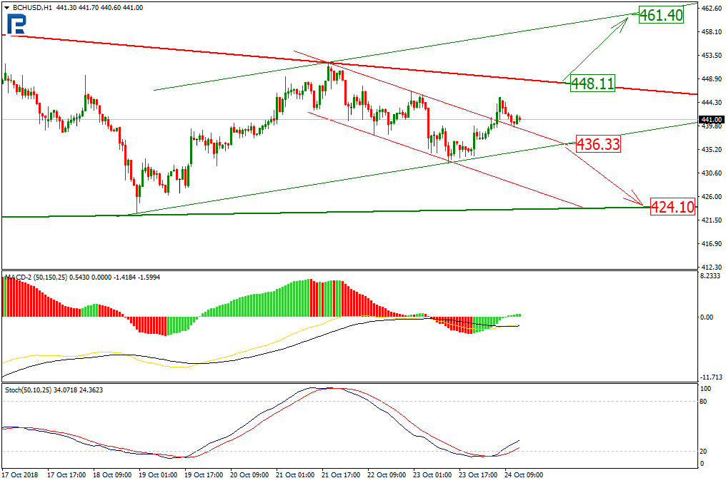 Анализ цен криптовалют: консолидация продолжаетсяОпубликовано: 7 лет назад Рынок криптовалют по-прежнему подвержен влиянию краткосрочных всплесков волатильности, однако в настоящий момент консолидация усугубляется. Выход из локального диапазона может «споткнуться» о границы среднесрочного боковика. И только прорыв ключевых уровней поддержки или сопротивления проявит действительные настроения участников крипторынка. О дальнейших возможных сценариях движения цен нескольких популярных альткоинов расскажет ведущий аналитик RoboForex Дмитрий Гурковский. Bitcoin CashНа часовом таймфрейме видно, что консолидация продолжается. Краткосрочная ситуация демонстрирует завершение локального нисходящего тренда пробоем линии сопротивления. Новый импульс роста может быть нацелен на актуальный уровень сопротивления — $448,11. В качестве подтверждающих факторов выступают «золотые кресты» на индикаторах MACD и Stochastic. В дальнейшем пробой текущего уровня сопротивления может открыть путь котировкам к сопротивлению формирующегося канала роста — уровню $461,40. Кроме этого, необходимо рассмотреть возможность снижения. Текущий уровень поддержки находится в районе $436,33. Его пробой может стать сигналом о развитии нисходящего тренда к уровню поддержки на отметке $424,10. EOSТекущая динамика EOS на часовом таймфрейме демонстрирует продолжение развития нисходящего тренда. Однако его угол наклона настолько невелик, что его масштабом можно пренебречь и назвать «боковиком». Также стоит отметить, что рынок преодолел линию поддержки среднесрочного коррекционного тренда. Сейчас цена пытается закрепиться на достигнутых уровнях, однако не исключено и восходящее движение. На это указывает динамика линий индикаторов MACD и Stochastic. Таким образом можно допустить, что целью роста может стать область сопротивления около $5,61. Принимая во внимание движение в боковике, стоит ожидать отбой от сопротивления и снижение к уровню поддержки на $5,29. Кроме этого, необходимо рассмотреть вариант выхода из боковика вверх, к уровню $5,92. Поскольку рынок по-прежнему находится в состоянии среднесрочной «турбулентности», это может вызывать краткосрочные всплески волатильности. EthereumНа часовом графике Ethereum можем видеть, что после пробоя линии поддержки консолидационного коридора криптовалюта развила нисходящий тренд, но не достигла локальных минимумов. Таким образом развитие даунтренда может вскоре завершиться. Кроме того, повышение значимых минимумов указывает на формирование восходящего тренда. В качестве подтверждения гипотезы о росте выступают показатели индикаторов MACD и Stochastic. Сигналом к дальнейшему росту будет пробой текущего локального уровня сопротивления — $202,90. Цели роста расположены на уровнях $204 и $206,30, находящихся в области сопротивления долгосрочного нисходящего тренда. Стоит принять во внимание, что возможность отбоя от уровня $204 позволит котировкам вернуться в рамки нисходящего коридора и локальной поддержке на $198,20, а далее — к уровню поддержки нисходящего канала у отметки $193,30. LitecoinЧасовой график Litecoin демонстрирует продолжение развития сужающегося коридора. Результатом такой динамики будет выход в любом из направлений, поскольку шансы для обоих вариантов равны. Текущим уровнем сопротивления является $52,64. Его пробой позволит котировкам подняться до у