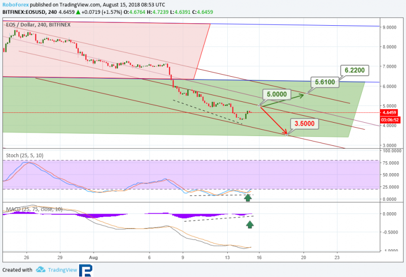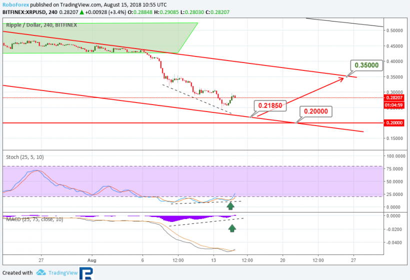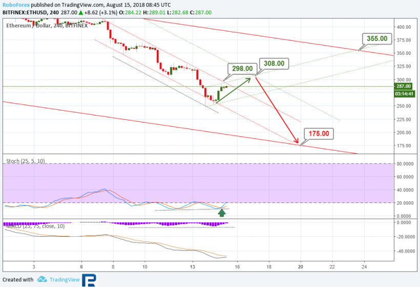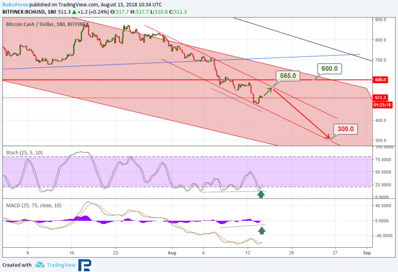 Анализ курсов криптовалют: откат по пути на дноОпубликовано: 7 лет назад Прошедшая и текущая неделя были самыми живыми и динамичными по сравнению с несколькими предыдущими. О дальнейших возможных сценариях движения цен нескольких популярных альткоинов расскажет ведущий аналитик RoboForex Дмитрий Гурковский. На рынке криптовалют формировались и развивались новые импульсы нисходящих трендов. Рынок по-прежнему находится в фазе нисходящего тренда и «дно» еще далеко, но краткосрочная остановка или откат уже «не за горами». EthereumОдной из самых интересных стала ситуация в динамике Ethereum, поскольку котировки криптовалюты смогли развить один из самых быстрых и стабильных микротрендов снижения. На 4-часовом таймфрейме можно увидеть направленность краткосрочного нисходящего тренда к линии поддержки долгосрочного канала снижения у отметки $175, но это, возможно, перспектива нескольких недель. В краткосрочном периоде, учитывая формирование конвергенций на MACD и Stochastic, можно допустить начало развития коррекционного восходящего тренда. Локальное сопротивление нисходящему тренду оказывает уровень $298. Его пробой может открыть котировкам путь к линии сопротивления верхнего проекционного канала — $308. Bitcoin CashДолгосрочная, среднесрочная и краткосрочная тенденции котировок Bitcoin Cash сохраняют нисходящую направленность. Основными вехами в развитии очередного импульса снижения были отбой от линии сопротивления и пробой фрактального уровня поддержки на $600, который в настоящий момент является сильным сопротивлением. Краткосрочный канал нисходящего тренда, на первый взгляд, выглядит довольно стабильным и может указывать на потенциал снижения к психологически важному уровню $300. Но, если рассмотреть графики индикаторов Stochastic и MACD, то можно увидеть конвергенцию и «Золотые кресты». Эти факторы говорят о начале краткосрочного отката. Его ближайшей целью может стать линия сопротивления текущего коридора снижения у отметки $565, возможно — и около $600. EOSНа прошлой неделе техническая картина EOS демонстрировала начало пробоя линии поддержки вблизи отметки $6,22, которая в настоящий момент является ключевым сопротивлением. К настоящему моменту мы видим, что произошло ускорение развития краткосрочного нисходящего тренда после пробоя линии поддержки предыдущего канала снижения. Основная цель среднесрочного нисходящего тренда находится вблизи уровня поддержки текущего проекционного канала — отметки $3,50. С учетом формирования «Золотых крестов» на MACD и Stochastic, а также конвергенций, допускаем возможность роста к линии сопротивления — уровню $5,00. После его пробоя, возможно, и к $5,61. LitecoinКотировки Litecoin после тестирования линии сопротивления среднесрочного канала снижения вернулись в рамки предыдущего коридора. Краткосрочная же техническая картина Litecoin демонстрирует приближение к линии поддержки актуального канала, кроме этого наблюдается формирование конвергенции и «Золотых крестов» на индикаторах Stochastic и MACD, что совокупно указывает на возможность отката к линии сопротивления у отметки $60. Ее пробой может открыть путь котировкам к отметке $68. Но в случае отскока от локального сопротивления можно ожидать новый импульс снижения к линии поддержки на отметке $45. RippleС точки зрения технического анализа динамика Ripple сохраняет тенденцию нисходящего ха