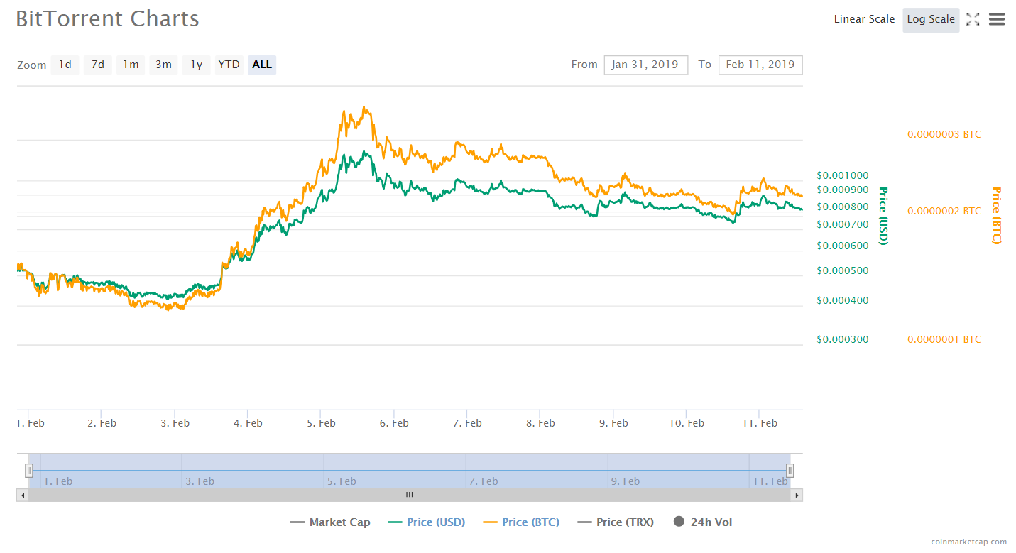 Сегодня стартует эирдроп длиной в шесть летОпубликовано: 7 лет назад В понедельник, 11 февраля, Tron Foundation начинает серию эирдропров токена BitTorrent (BTT), которые будут проходить каждый месяц в течение следующих шести лет, то есть до февраля 2025 года. Как известно, общая эмиссия BTT составит 990 млрд монет, из них в первой раздаче примут участие 10,1%, то есть 990 млн. Первый такой эирдроп состоится после того, как в сети TRON будет найден блок 6,000,000. В течение ближайшего года держатели TRX будут получать за одну монету 0,11 BTT, и каждые 12 месяцев это число будет постепенно увеличиваться. Предполагается, что получить бесплатные монеты BTT смогут все держатели TRX, при этом для этого необязательно держать криптовалюту на какой-либо бирже – эирдроп также поддерживают кошельки Tron Wallet и Trust Wallet. Среди бирж, объявивших о намерении поддержать раздачу, можно перечислить Binance, Bitfinex, OKEx, Huobi, Bithumb, Upbit, Gate.io, Bittrex International, Bibox, BitForex, Coinsuper, Kucoin, и Bitexbook.