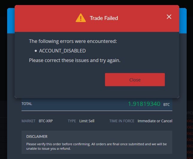 Пользователи снова жалуются на блокировку верифицированных аккаунтовОпубликовано: 6 лет назад В последние дни снова стали поступать жалобы на то, что популярная криптовалютная биржа Bittrex блокирует аккаунты уже верифицированных пользователей. В частности, информацию об этом приводит bitlenta.