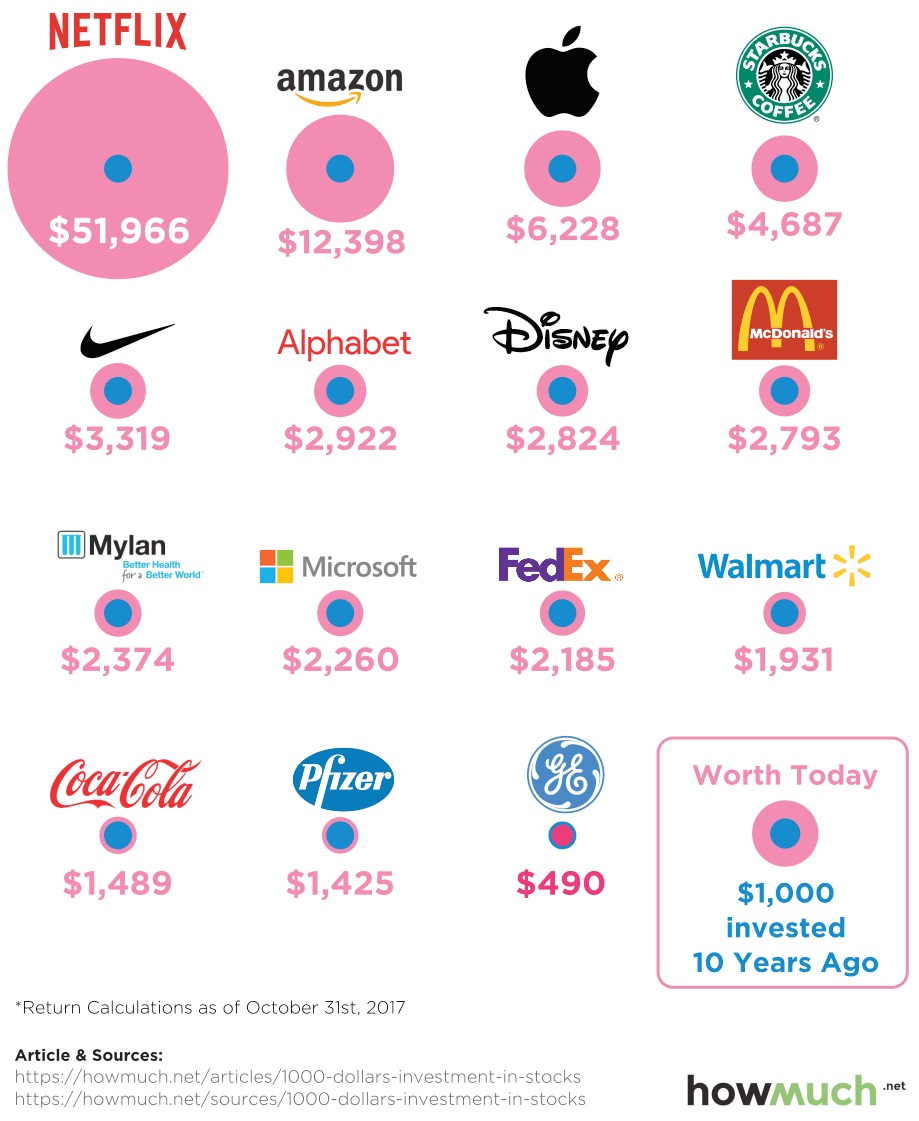 Не только биткоин: Сколько за 10 лет может принести инвестиция в $1000Опубликовано: 7 лет назад 11 октября 2007 года индекс Доу-Джонса для акций промышленных компаний показал рекордный внутридневной показатель в 14 198,10 пункта. Тогда было невозможно представить, когда индекс достигнет следующего пика, и вот это произошло шесть лет спустя, в 2013 году. 22 октября 2017 года зафиксирован новый рекорд — 23 328,630 пункта. Инвесторы успели стать свидетелями и резкого обвала, и медленного, непредсказуемого восстановления. Возникает вопрос: насколько успешными (или провальными) стали их вложения в десятилетней перспективе? Инвестирование на пике рынкаГипотетически предположим, что вы купили на $1000 акции некоторых из самых известных компаний Америки во время докризисных максимумов в октябре 2007 года. График от HowMuch.net показывает, насколько бы вы смогли преуспеть с учётом текущей цены акций, не реинвестируя дивиденды. Каждая синяя точка ниже показывает исходные инвестиции в размере $1000, а каждый розовый круг представляет ценность этих вложений сегодня. Если бы вы инвестировали в Netflix примерно в то время, когда компания запускала сервис потокового видео в США, вы смогли бы увеличить свои первоначальные вложения в 50 раз. Между тем акции Amazon выросли с тех пор более чем в 10 раз, а «голубые фишки», такие как FedEx или McDonald’s, стали по крайней мере в два раза дороже. Единственной компанией из приведённого выше списка, акции которой теперь дешевле, является General Electric, хотя стоит отметить, что за прошедшие 10 лет она могла бы заплатить вам дивиденды. Исторически сложилось, что в долгосрочном периоде фондовый рынок почти всегда увеличивался в цене. Однако людям, купившим акции в октябре 2007 года, казалось, что грядёт конец света и невозможно думать о каком-либо восстановлении или росте. Конечно, в кризис цены на активы поддерживались количественным смягчением, рекордно низкими процентными ставками и другими спорными тактиками центрального банка. В любом случае сейчас ясно, что инвестиционный портфель, сформированный на пике индекса Доу-Джонса в 2007 году, мог бы сегодня дать неплохую прибыль. Наверное, все согласны, что было бы лучше инвестировать в 2009 году, когда цены стали крайне низкими. Однако приятно осознавать, что удержание акций в кризис в конечном итоге окупилось для тех людей, у кого хватило выдержки поступить именно таким образом. Поскольку сейчас рынок всё растёт и растёт, это наблюдение, пожалуй, заслуживает внимания. Последние новости рынка криптовалют |