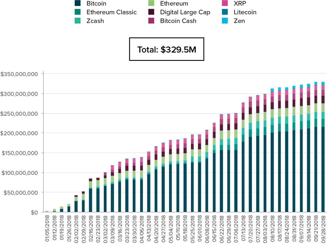 Криптовалютные инвестиционные продукты Grayscale Investments привлекли в 2018 году рекордные $330 млнОпубликовано: 7 лет назад Инвестиционная компания Барри Силберта Grayscale Investments привлекла в 2018 году в предлагаемые продукты рекордные $330 млн. Об этом говорится в инвестиционном отчете компании за 3-й квартал. Так, за последние три месяца инвесторы вложили в продукты Grayscale $81,1 млн, что на 33% больше, чем во втором квартале. По сравнению с прошлым годом за тот же период времени приток средств вырос почти в 12 раз. С учетом почти $250 млн, которые были инвестированы в продукты компании в первой половине года, суммарно это дает $329,5 млн.