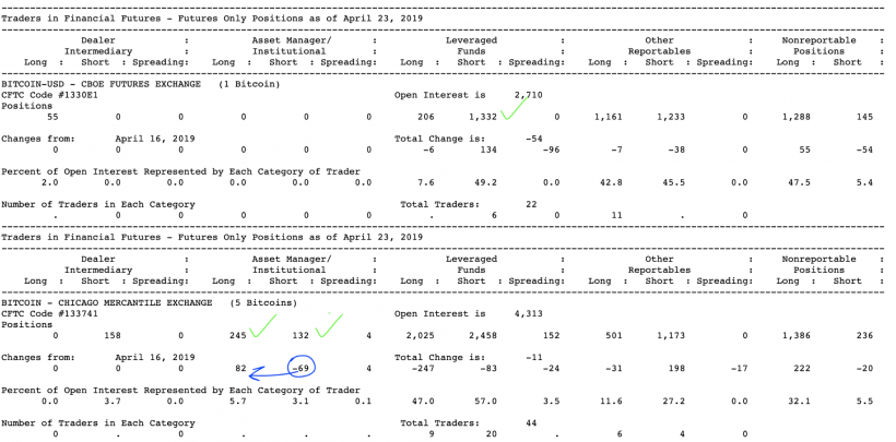 Анализ фьючерсных отчетов: крупный игрок пришел в движениеОпубликовано: 6 лет назад Фьючерсные отчеты — полезный для трейдеров инструмент, помогающий уловить настроения среди крупных игроков и дополнить видение рыночной ситуации. О том, какие настроения царят в стане «китов» биткоин-рынка, рассказывают аналитик Дмитрий Перепелкин и глава отдела коммуникаций Inception Fund Екатерина Скобицкая. В отчете за период с 16 по 23 апреля есть ряд интересных изменений, которые указывают на постепенную смену парадигмы. Так, институционалы (Asset Managers) закрыли 69 коротких позиций и открыли 82 длинных. В итоге: 245 лонгов против 132 шортов. На Чикагской товарной бирже (CME) перевес в пользу медвежьего настроения у хедж-фондов и инвестфондов (Leveraged Funds) составляет 21%, тогда как на Чикагской опционной бирже (CBOE) разница в 6,5 раз. При этом наблюдается закрытие хеджевых позиций: на CBOE они уже полностью закрыты, а на CME сокращены на 15%. Отчет CME свидетельствует о том, что «умный» коммерциал частично вышел из рынка. Мы знаем, что он держит крупную хеджевую позицию (по состоянию на 20 ноября у него были открыты 174 контракта), и вполне вероятно, он сохранил долю этой позиции, поскольку открытыми остались 87 контрактов. Одним из возможных признаков разворота можно считать закрытие чуть менее половины хеджевых позиций этим игроком, что и происходит в данный момент. Дополнительным параметром оценки рыночного ажиотажа является спрос на маржинальное кредитование, который сильно подскочил. Сейчас все чаще удается ловить аномальные ставки кредитования. Этот момент был зафиксирован на примере BTC и USDT: