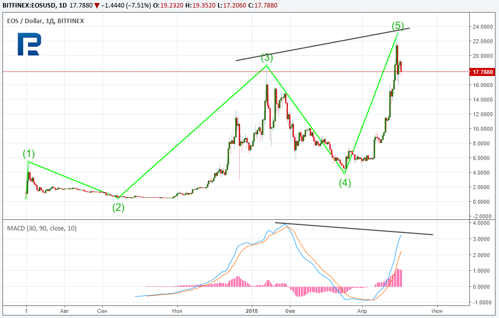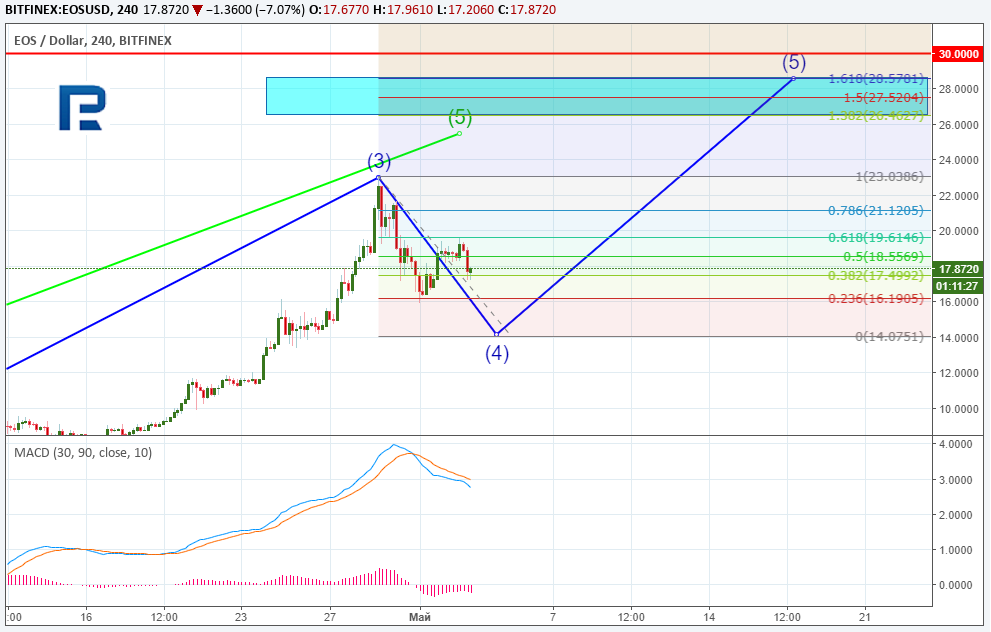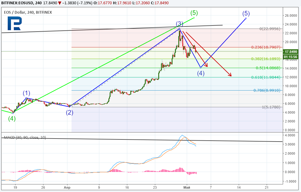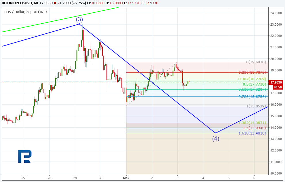 Технический анализ EOS — в ожидании большого апгрейдаОпубликовано: 7 лет назад В прошлом месяце криптовалюта EOS продемонстрировала впечатляющую динамику роста. Быки толкали цену актива вверх на фоне положительных новостей о партнерстве с блокчейн-энтузиастами Майклом Као и Винни Ли, которые примут участие в формировании фонда EOS Global на $200 млн для экспансии платформы в азиатском регионе. Кроме того, разработчик платформы Block.one заключил партнерство с немецкой инвестиционной фирмой FinLab AG, которая будет управлять венчурным фондом от EOS на $100 млн с целью расширения платформы на европейский регион. Помимо прочего, разработчики EOS намерены отказаться от стандарта ERC20 и перейти на собственный блокчейн в начале лета 2018 года. Своим прогнозом о дальнейших перспективах движения цены EOS поделился ведущий аналитик RoboForex Дмитрий Гурковский. Рассматривая график дневного таймфрейма криптовалюты EOS, несложно разглядеть конструкцию «бычьей» пятиволновой формации. Стоит отметить, что пятая волна превысила максимум третьей, и при этом между ценовым графиком и графиком осциллятора формируется дивергенция. Такая ситуация может указывать на приближение завершения «бычьей» и начале «медвежьей» фазы. Однако преждевременные выводы делать не стоит. Чтобы понять, на каком именно этапе развития находится последняя волна фазы роста, необходимо проанализировать ее внутреннюю структуру. На четырехчасовом таймфрейме начавшееся нисходящее движение может быть охарактеризовано как четвертая коррекционная волна внутри пятой, завершающей фазу роста. Таким образом, впереди еще пятая внутренняя, которая завершит пятую внешнюю волну, что укажет на начало «медвежьей» фазы. На данном этапе можно спрогнозировать потенциальные цели развития динамики четвертой волны. К настоящему моменту нисходящий импульс скорректировал третью волну на 38,2% по шкале Фибоначчи. По всей видимости, коррекция не завершена, поскольку сформирована лишь первая импульсная волна «А» и коррекционная «B». Таким образом, далее можно ожидать очередную импульсную волну — «C». Целями для нового импульса снижения могут стать уровни 50,0% ($14,00) и 61,8% ($11,98) по Фибоначчи относительно третьей волны. Допуская коррекцию до уровня 50,0% в четвертой волне, можно ожидать от отметки $14,00 старт пятой волны, завершающей пятую основной фазы. Цели такого импульса можно определить, используя шкалу Фибоначчи. Преодолев текущий максимум $23,04, котировки могут направиться в диапазон посткоррекционного расширения 138,2 — 161,8% ($26,46 — $28,57). Психологически важная цель $30 также может выступать в роли своеобразного «магнита внимания» для трейдеров и инвесторов. Краткосрочная картина EOS, как было описано ранее, демонстрирует завершение волны «B». Исходя из размера этой волны, можно оценить потенциал для волны «C». Пробив локальный минимум, котировки могут снизиться в локальный диапазон посткоррекционного расширения 138,2-161,8% ($14,38 — $13,48) по шкале Фибоначчи, что практически соответствует области 50%-й коррекции относительно предыдущей третьей волны роста. Напомним, по средам на ForkLog выходит анализ цен наиболее ликвидных альткоинов. Последние новости рынка криптовалют |