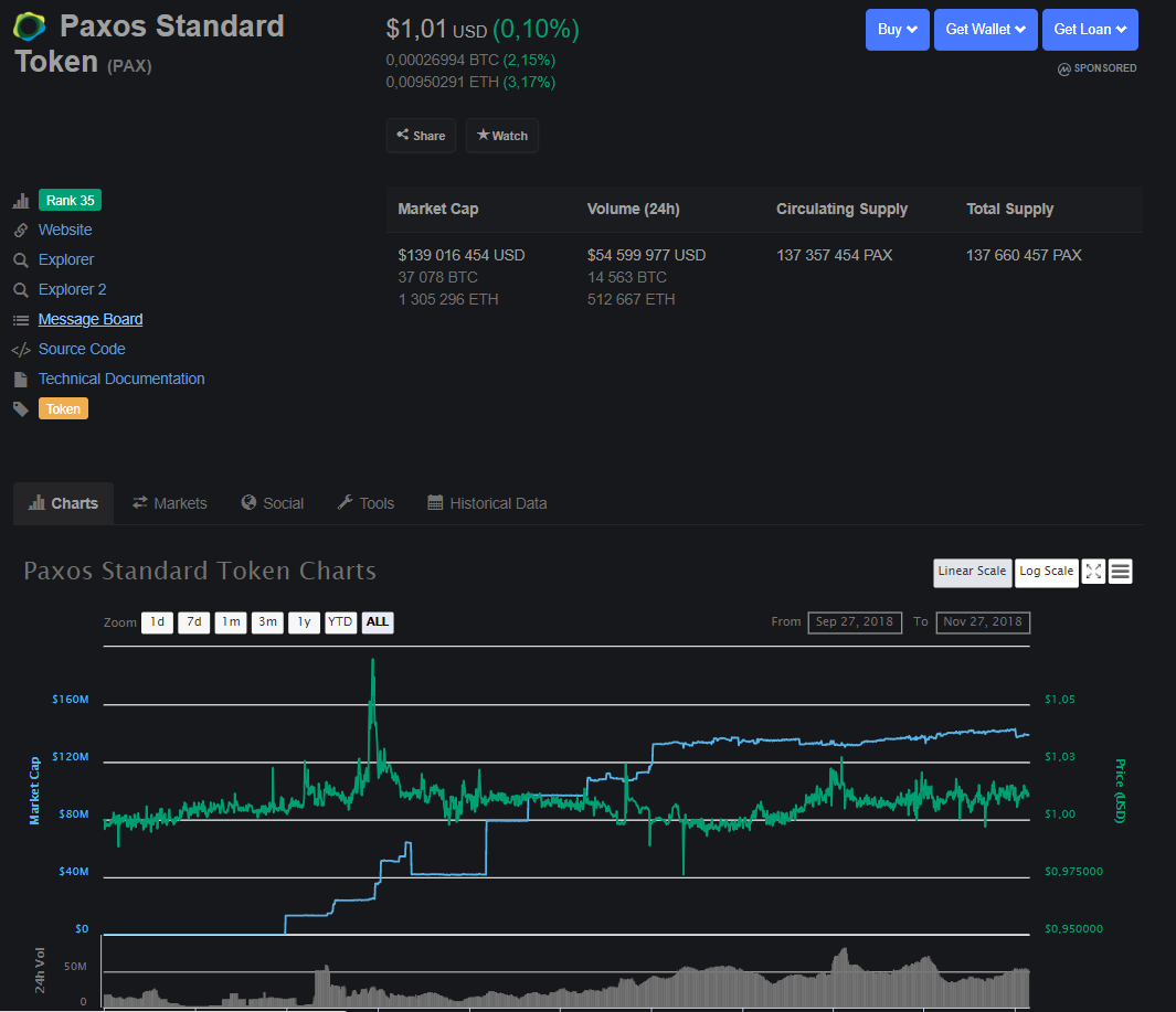 Binance добавит пары с токеном Paxos на комбинированный рынок стейблкоиновОпубликовано: 7 лет назад Крупнейшая по объему торгов криптовалютная биржа Binance добавит шесть торговых пар со стейблкоином Paxos Standard Token (PAX).