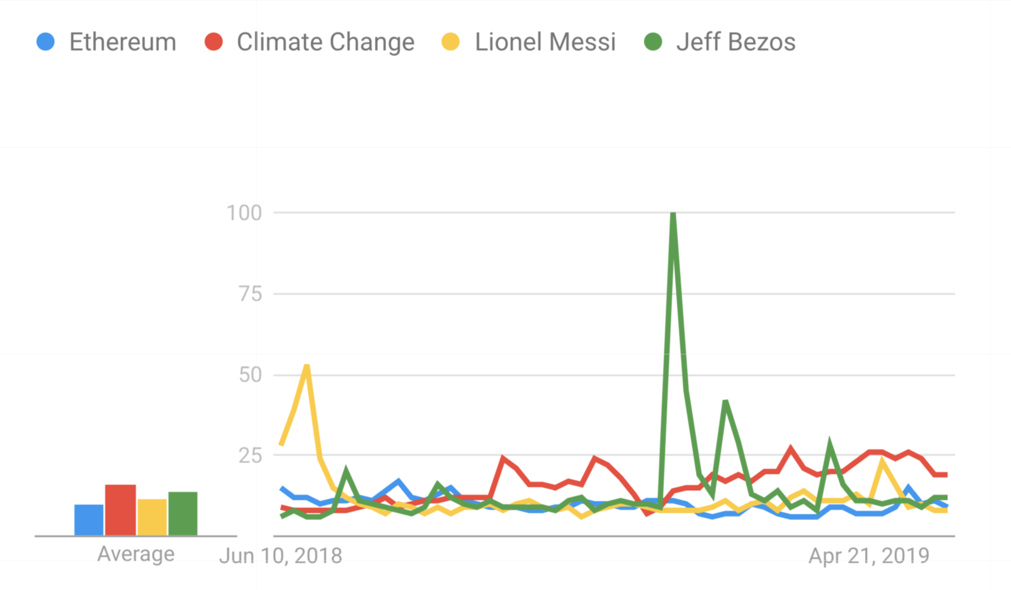 Google Trends: биткоин ищут чаще, чем Дональда Трампа, Кардашьян или TeslaОпубликовано: 6 лет назад Интерес к криптовалютам снова растет — в мае число поисковых запросов по слову «биткоин» резко возросло, превысив значения за весь предыдущий год. Об этом свидетельствуют данные Google Trends. trends.embed.renderExploreWidget("TIMESERIES", {"comparisonItem":[{"keyword":"bitcoin","geo":"","time":"today 12-m"}],"category":0,"property":""}, {"exploreQuery":"q=bitcoin&date=today 12-m","guestPath":"https://trends.google.ru:443/trends/embed/"}); Наибольший интерес к биткоину, согласно статистике, проявляют жители Нигерии, ЮАР и Ганы, за ними следуют Австрия и Нидерланды. trends.embed.renderExploreWidget("GEO_MAP", {"comparisonItem":[{"keyword":"bitcoin","geo":"","time":"today 12-m"}],"category":0,"property":""}, {"exploreQuery":"q=bitcoin&date=today 12-m","guestPath":"https://trends.google.ru:443/trends/embed/"}); Примечательно и то, что в мае биткоин искали чаще, чем президента США Дональда Трампа, компанию Tesla или интернет-звезду Ким Кардашьян. Отметим, количество поисковых запросов в мае сопоставимо с уровнями, наблюдавшимися перед взлетом цены биткоина до своих исторических максимумов в конце 2017 года, а также в момент достижения ценового пика в 2013 году. Растет и интерес пользователей к Ethereum, хоть и не такими темпами, как это происходит с первой криптовалютой. Так, аналитики ConsenSys сравнили поисковые запросы по словам «Ethereum», «изменения климата», «Джефф Безос» и «Лионель Месси». В течение короткого периода осенью эфир вышел в лидеры, однако позже все же уступил своим «конкурентам». Напомним, обычно количество поисковых запросов растет вместе с ростом цены биткоина. В мае же стоимость первой криптовалюты росла довольно быстрыми темпами, в определенный поднявшись выше отметки $9000. Последние новости рынка криптовалют |