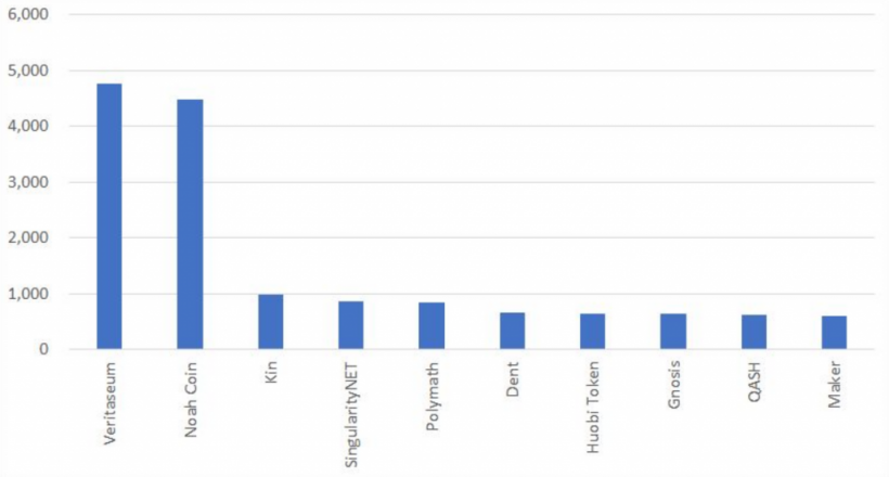 По текущему неликвидному курсу активы ICO-проектов в собственных токенах составляют около $5 млрд, обесценившись больше чем на $70 млрд. Впрочем, отмечают исследователи, это значение весьма условно, поскольку ликвидность токенов на пиковых уровнях была низкой. Классифицировать изменения этой суммы как убытки некорректно еще и потому, что организаторы ICO переводили токены в свои кошельки в соответствии с условиями краудсейлов. Изучив архив переводов токенов с кошельков ICO-команд, BitMEX и TokenAnalyst пришли к выводу, что реализованная прибыль от продажи таких токенов могла равняться $1,5 млрд с оговоркой, что часть токенов, возможно, так и не была продана или покинула кошельки по иным причинам. Наибольшие объемы токенов на свои кошельки зачислили команды проектов Veritaseum и Noah, что, как отмечают аналитики, выглядит «почти комично» на фоне реальных объемов торгов. Стоимость токенов проектов, зачисленных на их собственные кошельки, в миллионах долларов США по курсу на момент выпуска – ТОП-10.В заключении исследователи подчеркнули, что их отчет основан на анализе транзакций с учетом биржевой цены токенов, а не на документах и ??политиках отдельных проектов, что может обусловить неточность данных.