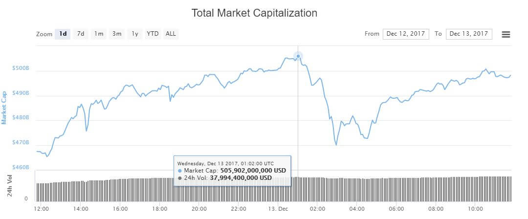 Капитализация криптовалютного рынка превысила $500 миллиардовОпубликовано: 7 лет назад