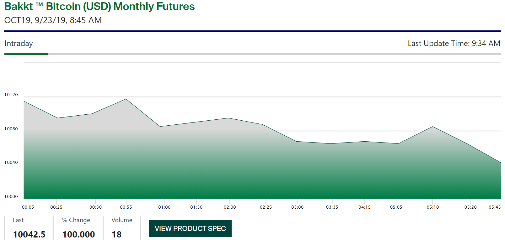 Первая сделка была заключена в 20:02 ET по цене в $10 115, говорится в сообщении Bakkt.