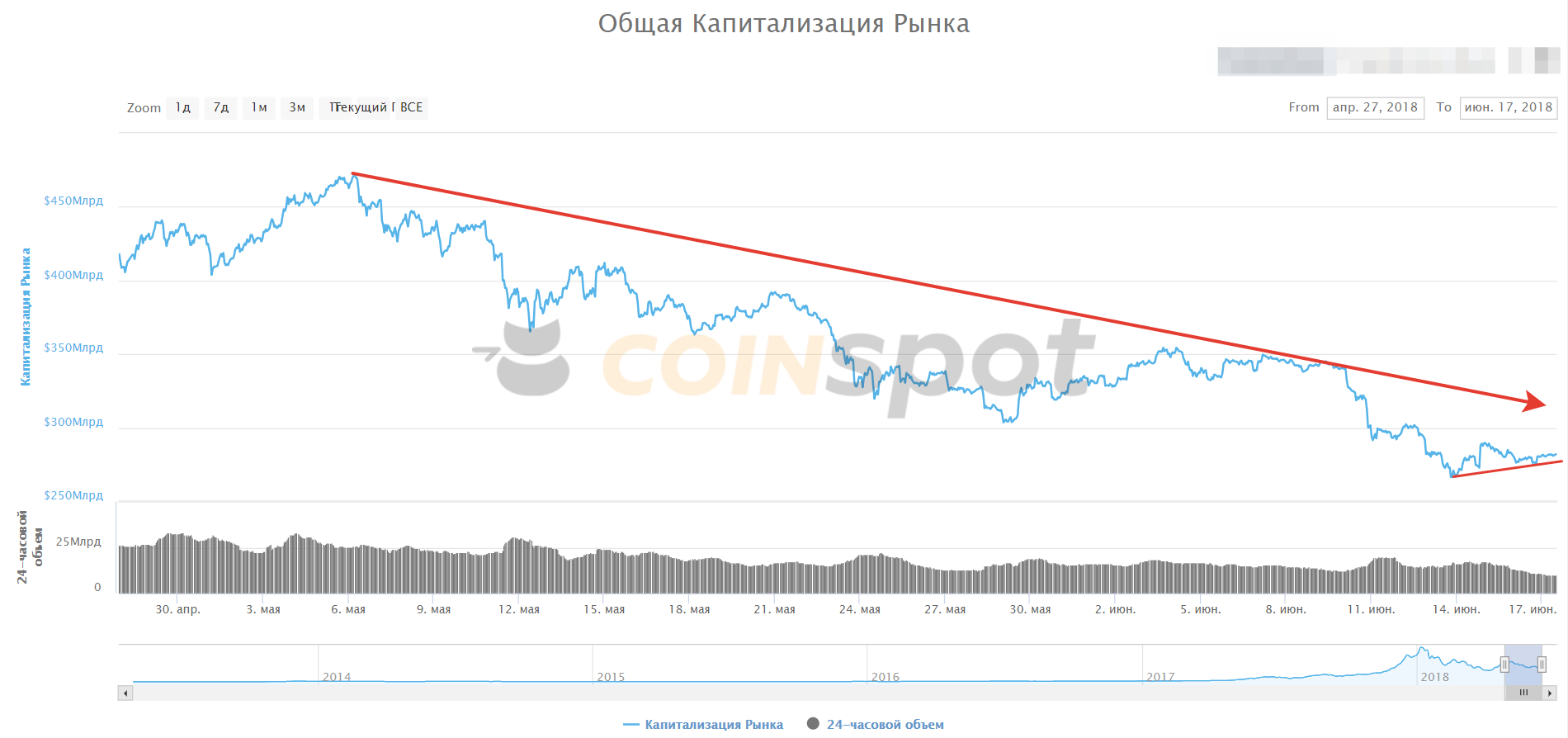 Торговые идеи по криптовалютам на 17 июня 2018 — BTC, ETH, EOS, ZEC, XMRОпубликовано: 7 лет назад Обратите внимание на поведение кривой общей капитализации рынка криптовалют – со среды, 13 июня, консолидация в небольшом диапазоне. При этом, общая тенденция падения с мая 2018 года не прерывается и не изменяется. То есть, текущую приостановку падения, пока нет сильного покупателя, рассматриваем как подготовку к новому витку продаж. С начала торгового дня ведущая десятка криптовалют преимущественно в плюсе, но оптимизм незначительный с максимальным ростом менее 1%. Просадка по некоторым активам также не превышает 1%. BTCUSDПокупки к $7000-7034 возможны только если цена сможет закрепиться выше $6600. ETHUSDНа сегодня торговая возможность может появиться при пробое вниз линии восходящей тенденции с 13 июня. Пробой вниз уровня $493 будет поводом продаж к уровню $463. EOSUSDИспользуем для принятия торговых решений уровень $10,7000. Пробой вверх может стать поводом купить актив к уровню $11,0049. Отбой вниз (а уровень сильный для продаж) будет поводом коротких позиций к поддержке $10,2000. ZECUSDРаботаем сегодня-завтра на отбой от уровня $193,60. Торги выше могут стать поводом купить актив на $207,40 (вероятность реализации сценария 30%). Если цена уйдет под линию тенденции с 13 июня – продажи к уровням $174-180. XMRUSDРаз уж мы не ждем высокой волатильности сегодня завтра, а также допускаем вариант снижения стоимости криптовалют как приоритетный – предлагаю работать по ключевым уровням, которые были сформированы на рынке за последние дни. Например, достижение сопротивления $127,95 и отбой вниз будет поводом продаж к уровню $122,16. Если же цена уйдет резко выше отметки $127,95, то цель роста лежит к уровню $132,20. При падении котировок под уровень $122,16 цель снижения к $116,20. Мария Сальникова, независимый валютный стратег, специально для CoinSpot Мой канал для трейдеров с торговыми сигналами в реальном времени: http://clc.la/mariacoinspot Обзор отражает субъективную позицию аналитиков Coinspot c учетом личного стиля торговли. Торговые операции с криптовалютой носят повышенные риски ввиду особенностей рынка. Редакция не несет ответствbенности за ваши торговые решения и рекомендует торговать только на те средства, потеря которых не будет критичной. Последние новости рынка криптовалют |