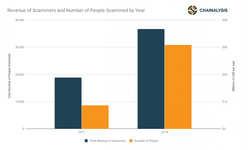 В результате различных мошеннических схем владельцы криптовалюты лишились в 2018 году $36 млн в долларовом выражении. Это вдвое больше, чем в 2017 году, когда у пользователей было похищено $17 млн, заявили в Chainalysis.Опубликовано: 7 лет назад В результате различных мошеннических схем владельцы криптовалюты Ethereum лишились в 2018 году $36 млн в долларовом выражении. Это вдвое больше, чем в 2017 году, когда у пользователей было похищено $17 млн, говорится в исследовании аналитической компании Chainalysis.