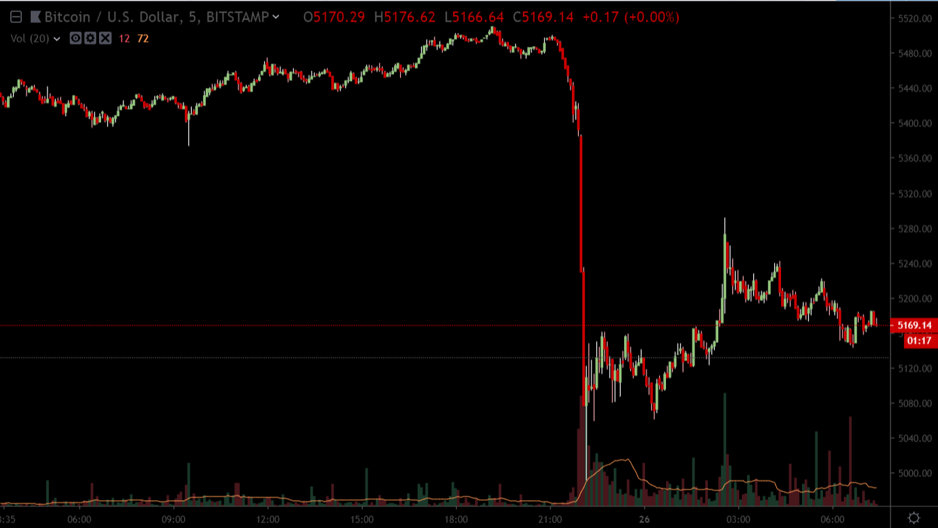 Также в заявлении говорится, что Bitfinex и Tether находятся в здоровом финансовом положении и намерены оспаривать судебное распоряжение. Как бы то ни было, на фоне этой новости цена биткоина резко пошла вниз, опустившись на ряде бирже ниже $5100. На момент публикации в пятницу утром средневзвешенный курс BTC составял $5290. Последние новости рынка криптовалют |