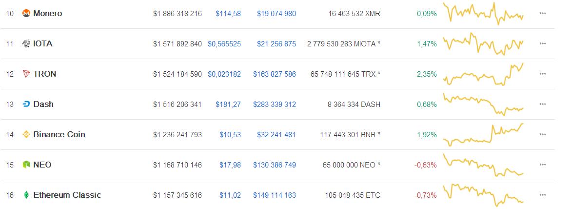 Binance Coin становится 14-й по величине криптовалютойОпубликовано: 7 лет назад Недавно мало кто знал о существовании криптовалюты Binance Coin (BNB). Она торговалась на минимальной отметке и не претендовала на высокие позиции в рейтинге криптовалют CoinMarketCap. Однако монета постепенно укреплялась, и сегодня, 5 октября, заняла 14-ю строчку рейтинга самых крупных цифровых активов, пишет NewsBTC. BNB — это проект криптовалютной биржи Binance. Монету можно использовать при оплате товаров и услуг у партнёров торговой площадки. Кроме этого, в Binance Coin можно оплачивать торговые сборы на крипторбирже. По последней информации, стоимость BNB составляет $10,53, а её рыночная капитализация выросла до $1,28 млрд. Binance Coin вплотную приблизилась к Dash, занимающей 13-ю строчку рейтинга, и по-прежнему растёт, поэтому у неё есть все шансы потеснить Dash сегодня ночью. Binance Coin растёт за счёт повышенного интереса инвесторов, которые всё больше доверяют Binance. 2018 год для этой биржи стал более чем насыщенным. В марте компания официально перенесла свою штаб-квартиру на Мальту. Затем она начала инвестировать средства в различные блокчейн-проекты в Азии и Европе. В апреле платформа объявила об уничтожении токенов BNB примерно на $30 млн. Сжигание монет производилось в строгом соответствии с графиком. Первый раз биржа Binance сожгла свои токены в октябре прошлого года. Последние новости рынка криптовалют |