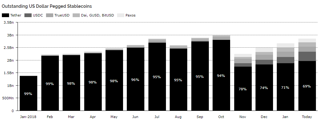 Diar: доход биткоин-майнеров в 2018 году упал почти в шесть разОпубликовано: 7 лет назад В аналитическом отчете Diar говорится, что по сравнению с январем 2018 года в декабре доход биткоин-майнеров уменьшился на 83%. В 2018 году майнеры биткоина получили от своей деятельности доход в размере $5,8 млрд. По итогам января прошлого года поступления от добычи BTC составляли $1,2 млрд, однако к декабрю этот показатель снизился до $210 млн. В начале прошлого года доля пулов Bitmain в хешрейте биткоина, включая контролируемые ею ViaBTC и BTC.com, составляла 53%. В начале 2019 года этот показатель уменьшился до 39%. Вероятно, это неплохо для децентрализации и снижения риска потенциальной «атаки 51%» на биткоин. Хешрейт сети первой криптовалюты достиг пика в начале второй половины 2018, а затем последовал существенный спад, продолжавшийся до конца прошлого года. Некоторый рост хешрейта начался во второй декаде января после того, как биткоин оттолкнулся от годового минимума у отметки $3200. В Diar предполагают, что после этого некоторые майнеры включили часть временно незадействованного оборудования. С другой стороны, отмечают исследователи, майнинг биткоина пока по-прежнему недоступен для мелких майнеров, поскольку для большинства из них точка безубыточности находится около отметки $5000 за биткоин. В целом удачный год для биржВ отчете говорится, что 2018 год ознаменовался для бирж «рекордным объемом операций». На большинстве крупных торговых площадок торговые объемы превысили показатели 2017 года. В то же время в Diar прогнозируют, что в 2019 показатели активности на спотовом рынке криптовалют окажутся ниже, чем в 2017 году, невзирая на возможное расширение листинга бирж новыми активами. Объем торгов на крупнейшей в США криптобирже Coinbase по сравнению с 2017 в прошлом году вырос на 21%. Рост объемов торгов на Kraken и Bitfinex за этот период составили 192% и 50% соответственно. Помимо роста объемов торгов, на Coinbase зафиксировано также увеличение количества сделок с криптоактивами. Рост за год составил 14,1% (82,7 млн сделок в 2017 году; 94,4 млн торговых операций — в 2018). Tether уже не тотЧто касается стейблкоинов, то в этом сегменте происходит стремительный рост монет, появившихся в 2018 году. На фоне этого процесса доля занимавшего некогда монопольное положение Tether USD (USDT) впервые упала ниже 70%: Среди «новых стейблкоинов» наибольшей популярностью пользуется USDC от стартапа Circle. Его доля на рынке стейблкоинов сейчас составляет 13%. Напомним, ранее аналитики Skew пришли к выводу, что через восемь месяцев «новые стейблкоины» превзойдут по капитализации Tether. Последние новости рынка криптовалют |