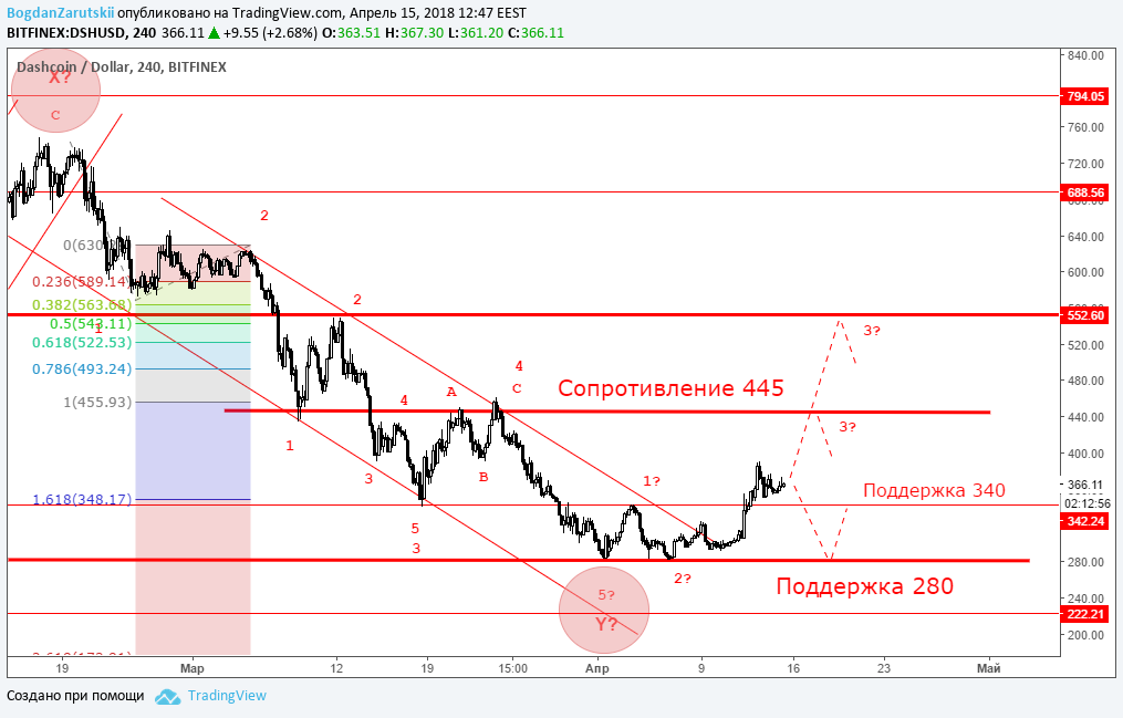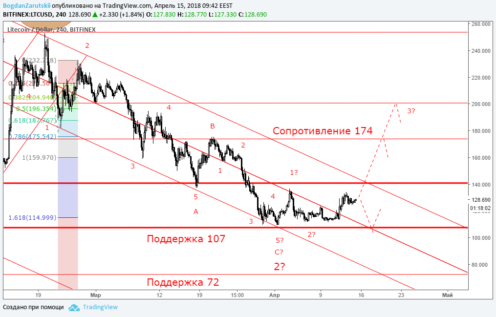 Прошедшая неделя порадовала участников криптовалютного рынка, так как биткоин показал резкий разворот на рост, а за ним устремились и альткойны. Сейчас видно первенство «быков», поскольку технически многие криптовалюты оставили позади важные уровни поддержки и торговые диапазоны. Капитализация рынка шагнула за $300 млрд, и это свидетельствует о спекулятивном интересе участников рынка к дальнейшим покупкам. Поэтому в случае уверенного роста рынка криптовалют на следующей неделе возможно допустить увеличение капитализации до $400 млрд и выше. Новостной фон, как и неделей ранее, находился в умеренно-позитивном ключе. Прогнозы аналитиков на рост биткоина и завершение налогового периода только подталкивало трейдеров больше покупать, чем находиться в стороне. Кроме того, не исключается геополитический аспект, где эскалация конфликта в Сирии и новая волна санкций, направленная на Россию («черный понедельник»), может спровоцировать участников рынка искать «тихую гавань» в виде криптовалют. И напоследок: криптоскептик Джордж Сорос намерен торговать криптовалютами. Напомним, его фонд Soros Fund Management на данный момент владеет активами в размере $26 млрд. А теперь технический анализ: BTC/USD: выход из нисходящего трендаБиткоин (BTC) закрепился в более высоких торговых рамках, график цены уверенно преодолел важный уровень сопротивления в районе $7455, что технически дало положительный сигнал. На данный момент сильный уровень сопротивления находится в районе $8100. Очевидно, что участники рынка придерживаются выжидательной позиции. Такая ситуация вполне логична, поскольку биткоин в рамках спекулятивной торговли перекуплен. Важно отметить выход из рамок нисходящей тенденции – это служит дополнительным сигналом в пользу формирования новой фазы восходящей тенденции. Если будет еще одна волна роста, тогда откроется перспектива достижения следующего уровня в районе $9200. С точки зрения волновой теории Эллиота, формируется новая фаза восходящего движения в рамках 1 2 3 4 5. Во второй половине прошлой недели сформирован импульс в рамках волны 3, и если будет пробой уровня $8100, тогда можно ожидать продолжения покупок со стороны участников рынка c целью до $9200. Негативный сценарий для биткоина - это тестирование поддержки в районе $7455. Данный уровень уже неоднократно тестировался, потому имеет большую степень важности. ETH/USD H4: сформировал сопротивлениеЭфир (ETH) как и биткоин преодолел важное сопротивление и закрепился в более высоких торговых рамках. На данный момент сопротивление в районе $513, и это служит положительным сигналом, поскольку его пробой сформирует новую волну роста. Кроме того, виден выход из рамок нисходящей тенденции, это в свою очередь дополнительный сигнал в пользу нового роста. Также видно, что на данный момент эфир локально перекуплен, поэтому наблюдается небольшая консолидация. Начиная со второй половины прошлой недели, формируется новый импульс с точки зрения волн Эллиота. Поэтому пробой уровня $513 даст сигнал на продолжение импульсного движения. В случае реализации такого сценария в центре внимания будет развитие импульсной волны 3, с целью до уровня $633. В случае развития негативного сценария, можно увидеть тестирование поддержки в районе $450. LTC/USD H4: по-прежнему в диапазонеЛайткоин (LTC) по сравнению с другими криптовалютами оказал